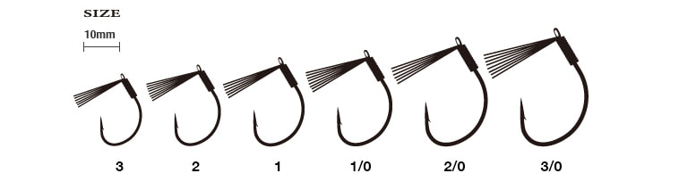 | サイズ (入本数) | 3 (4) | 2 (4) | 1 (4) | 1/0 (4) | 2/0 (4) | 3/0 (4) |