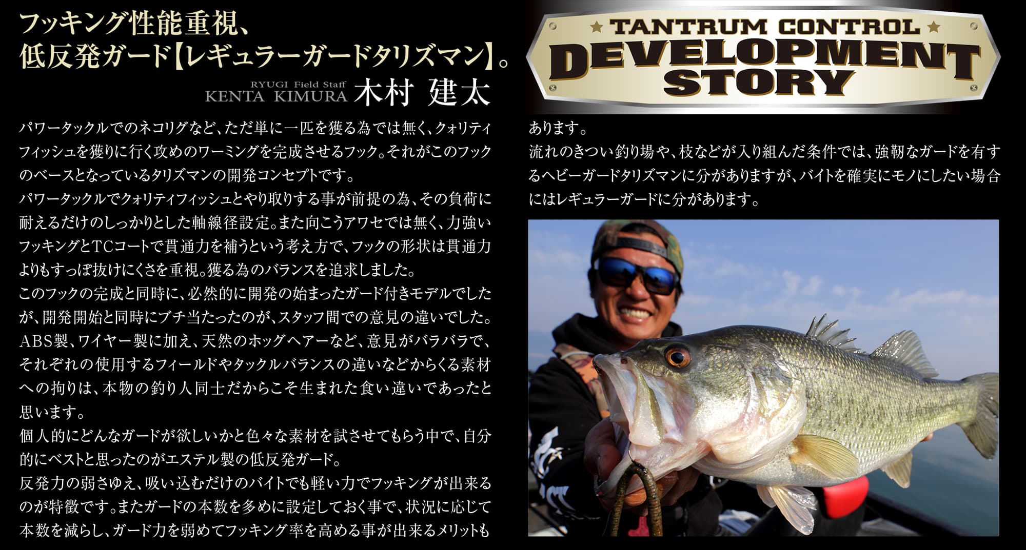 4lb以上のラインを使用したパワースピニングタックルやベイトタックルで、比較的ライトなカバー周りでの使用を前提としたガード付マス鈎。フックはワッキーフックとして高い評価を得るタリズマンをベースに、ガードをセットする為、形状にやや調整を加えた。