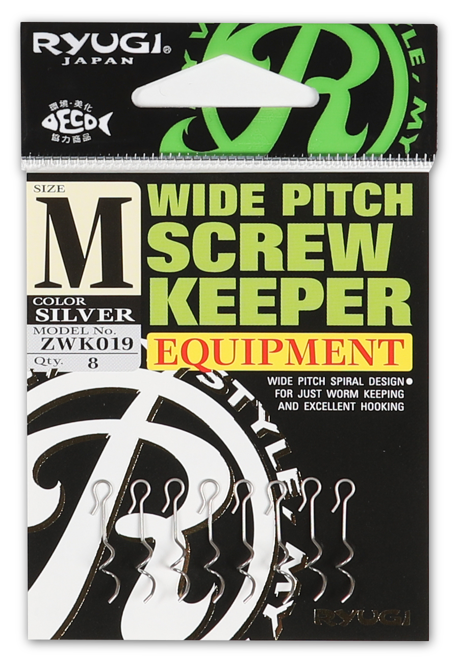 通常使用ではワームがズレにくく、フッキング時のみワームがズレる。わざとワームをズラす事によって高いフッキングを可能にする高性能キーパーがエキップメントパーツとして登場。ピアスフックの交換用としてはもちろん、今お使いのフックの交換用としても。フッキング力を高めたい時などはワイドピッチスクリューキーパーに交換する事で、状況に応じた使い分けができます。