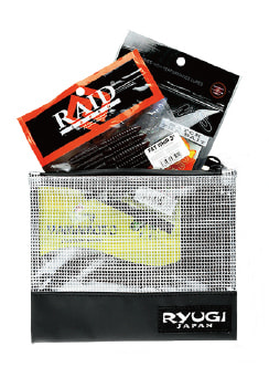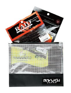 表面生地にはクリアPVCを採用し、一目で中身が判断出来るように。底部、背面生地にはターポリンを使用し、強度を確保。ファスナーには、止水ファスナーを採用する事で、防滴性能を持たせた。様々なサイズのワームパッケージやスイムベイト、小物の収納に対応するシステマティックな4サイズバリエーション。